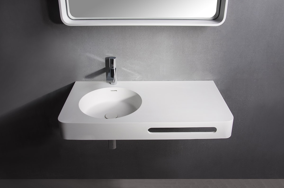 De Jong Sanitair en Tegelspecialist presenteert een toonaangevende collectie in betaalbaar Design Sanitair in de vorm van Solid Surface. Merknamen als Corian, Kerrock, Avonite, Hi-‐macs etc. klinken wellicht bekend in de oren. Typische voorbeelden van Solid Surface. Solid Surface is de verzamelnaam voor massieve oppervlakte materialen.