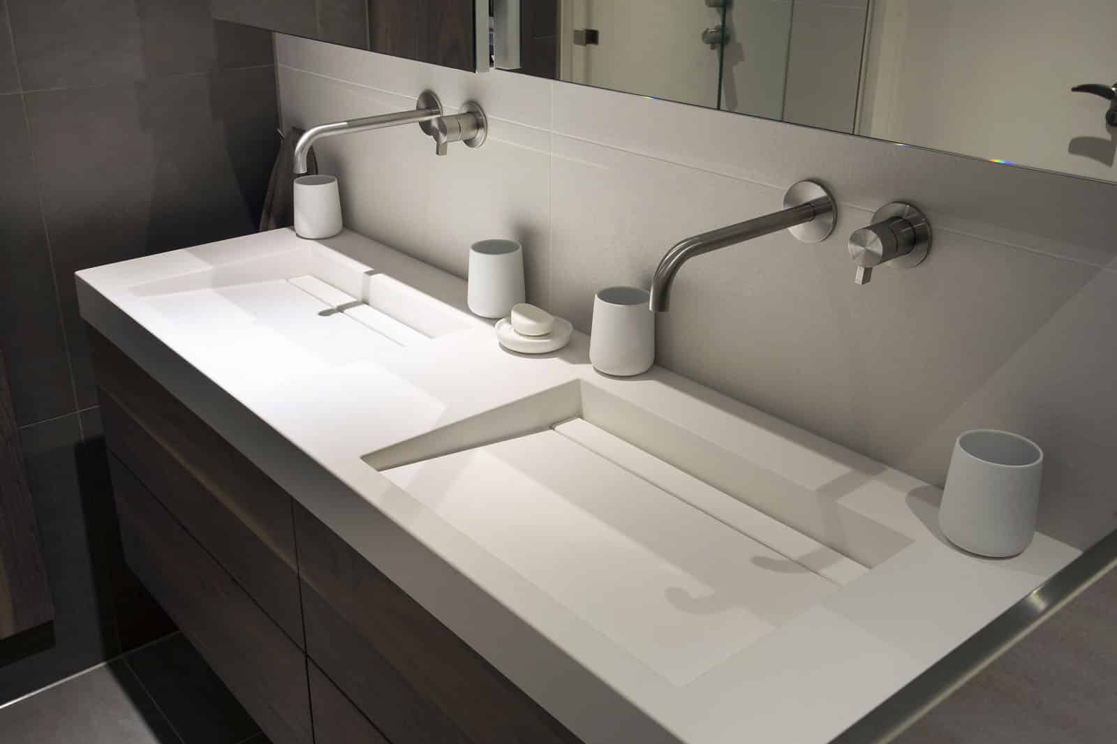 De vakmensen van de Jong Sanitair stonden voor dit project voor een mooie uitdaging. Of eigenlijk, een dubbele uitdaging. Deze klant had namelijk twee interessante ruimtes gekozen welke als badkamer moest gaan dienen. Qua stijl en sfeer moesten ze beide bovendien in harmonie naadloos op elkaar afgestemd zijn.