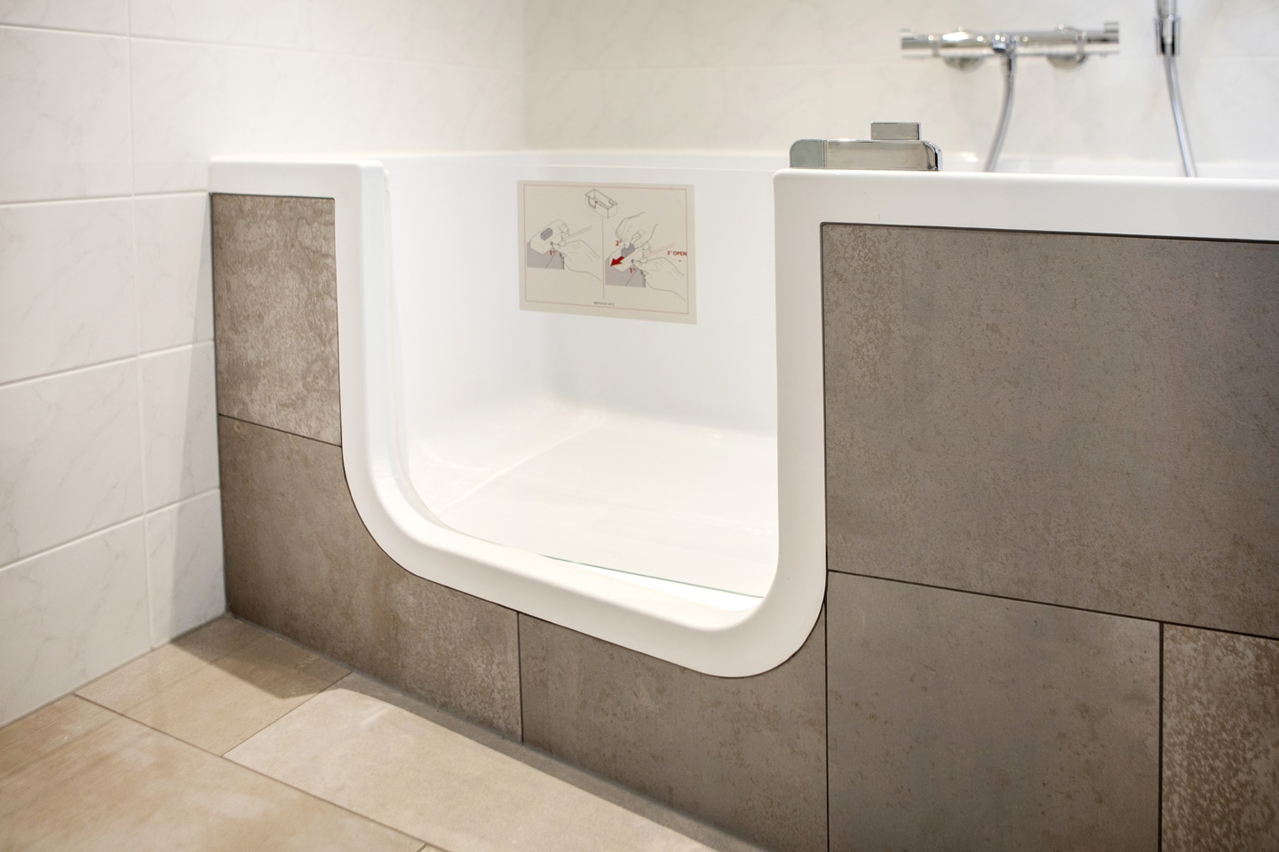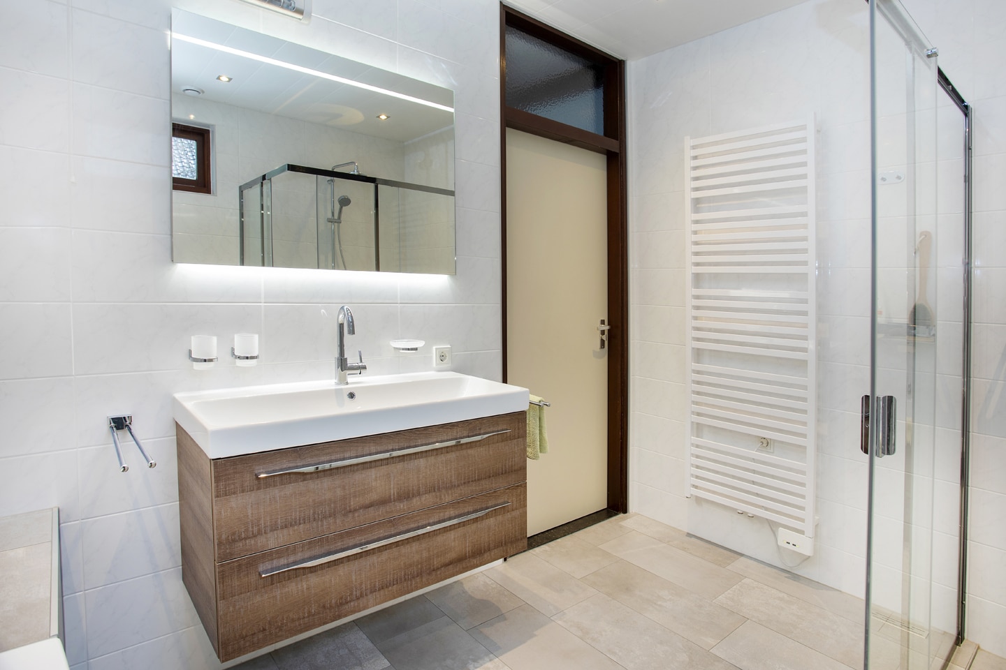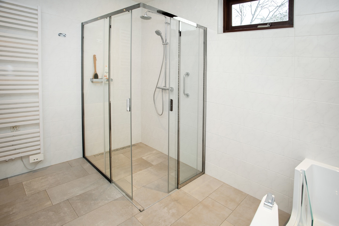 Centraal in deze prachtige badkamer staat de combinatie tussen specialistisch tegelwerk, gebruiksvriendelijke onderdelen en licht. De kleurencombinaties die gevormd worden door de tegelvloer, de houten wastafelkast en de lichte tegelwanden geven een strak en warme indruk. Het design is volledig ontwikkeld met oog voor de gebruiker die hierin centraal staat.