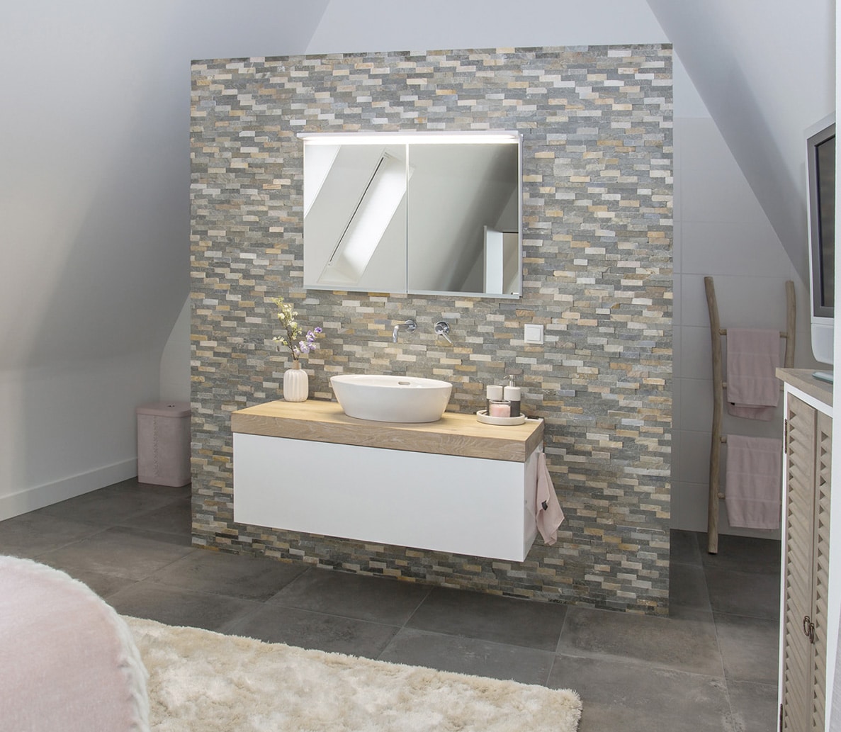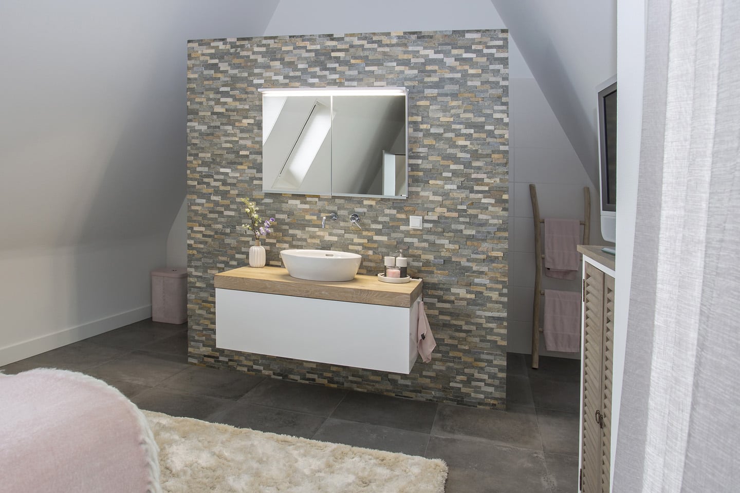 Wat betreft sfeer ontstaat er mede dankzij de bovenstaande omschrijving een spannend mengsel van landelijk, zomers en modern minimalisme. Het is best bijzonder te noemen dat deze stijlen elkaar niet bijten maar in perfecte harmonie juist een slim geheel vormen. Laat dat maar aan de specialisten van de Jong Sanitair over…