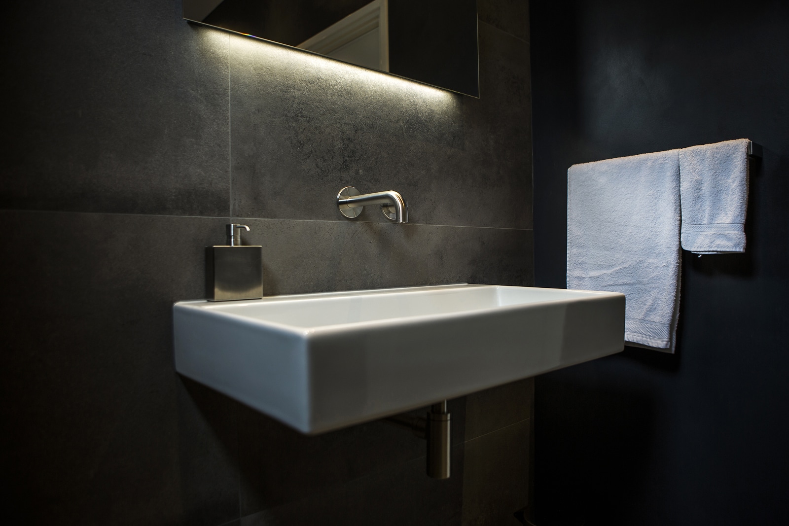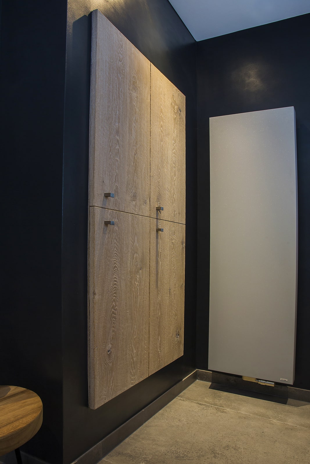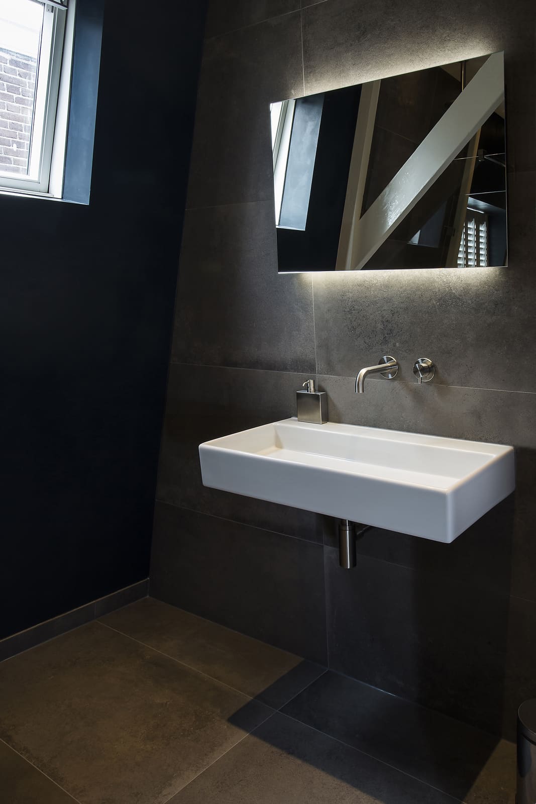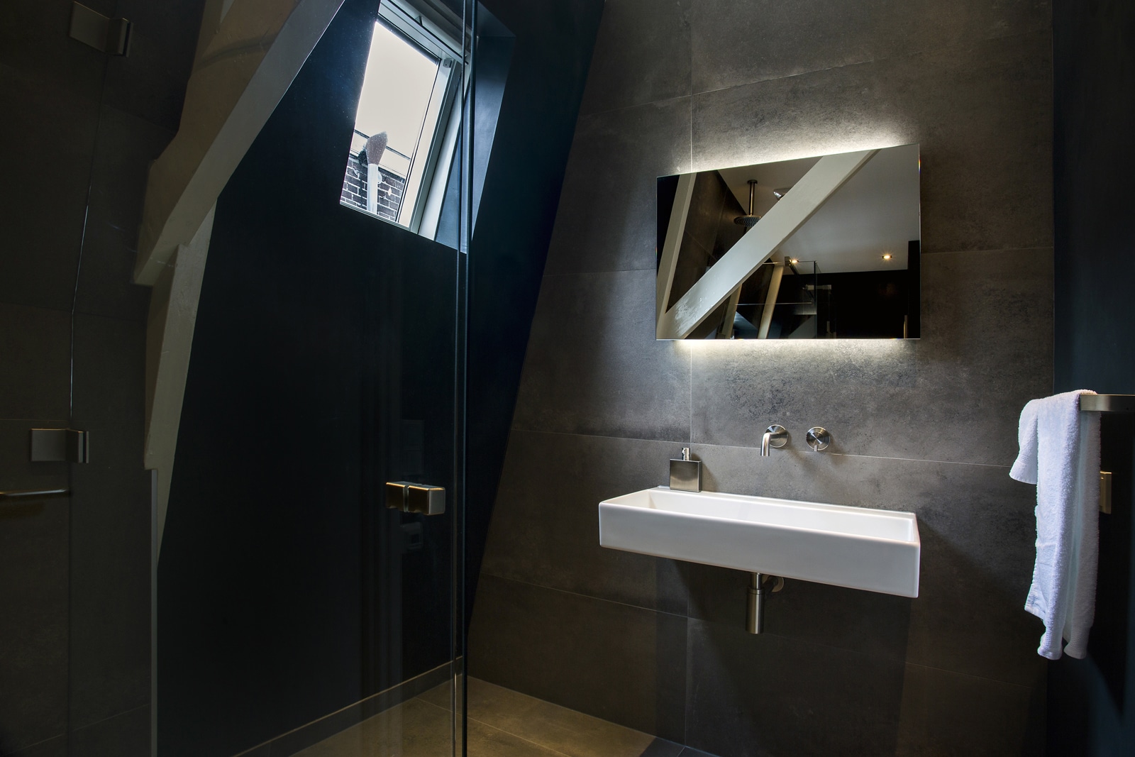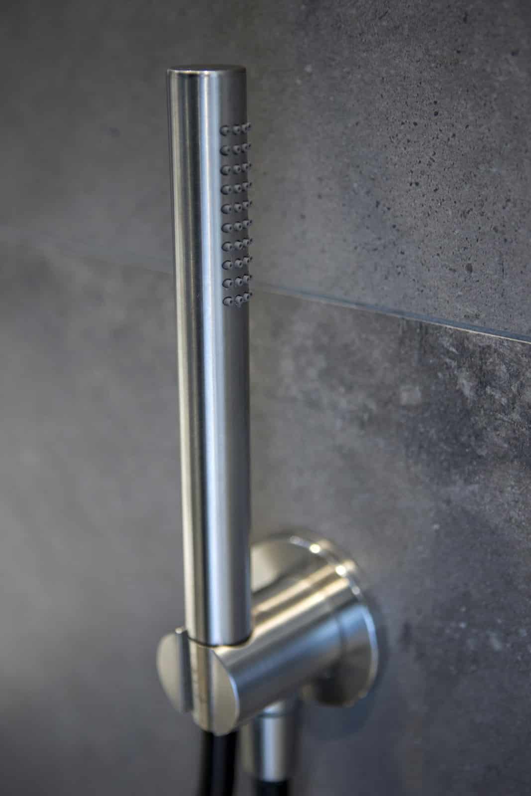 Deze moderne badkamer heeft alles wat u nodig hebt om ultiem te ontspannen. De combinatie van een strakke én warme uitstraling, aangevuld met fraaie industriële elementen geeft deze badkamer veel karakter. Een krachtig statement welke door de praktische indeling ook ruim oogt en aanvoelt. Dankzij bijvoorbeeld het transparante douchegedeelte krijgt de badkamer een open uitstraling wat een uitnodigende uitwerking heeft.