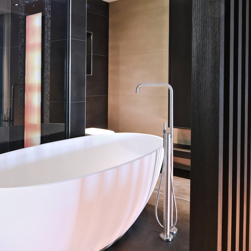 Voor het unieke horeca- en woonconcept Merckt in hartje Groningen, werd de Jong Sanitair uitgekozen voor het realiseren van een reeks uitdagende, custom made badkamer en tegelvloeren oplossingen. Custom made de Jong is in de wereld van architecten, aannemers en projectontwikkelaars, inmiddels een begrip bij de realisatie van dergelijke prestigieuze projecten. Kennis, ervaring, en gevoel voor esthetiek is hier namelijk van onschatbare waarde.