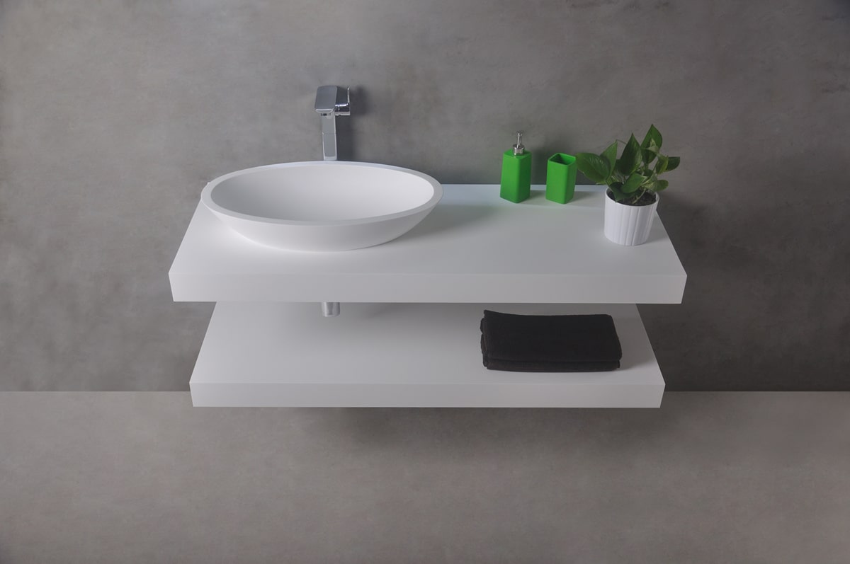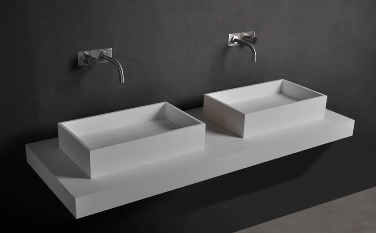 Betaalbaar design Sanitair in uw badkamer. De Jong Sanitair en Tegelspecialist presenteert een toonaangevende collectie in betaalbaar Design Sanitair in de vorm van Solid Surface.